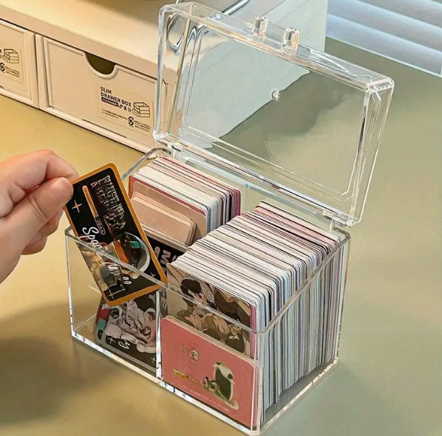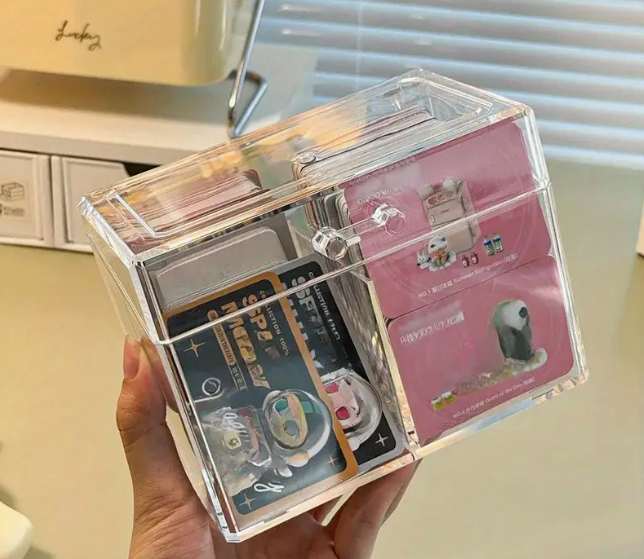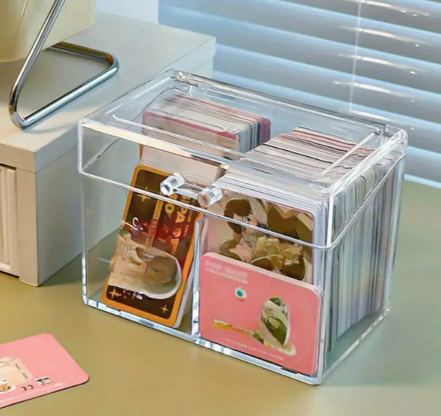 organizador de tarjetas fotográficas Kpop estilo coreano, diseño clásico, plástico duradero, caja abatible con compartimentos con dimensiones 12cm X 10cm X 9.5cm